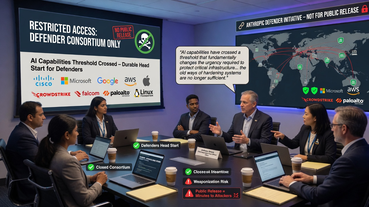 Instead of releasing this power publicly (where attackers could weaponize it within minutes), Anthropic restricted access to a closed consortium of defenders—including Cisco, Microsoft, Google, AWS, Apple, CrowdStrike, Palo Alto Networks, and the Linux Foundation. The explicit goal: give the good guys a durable head start.