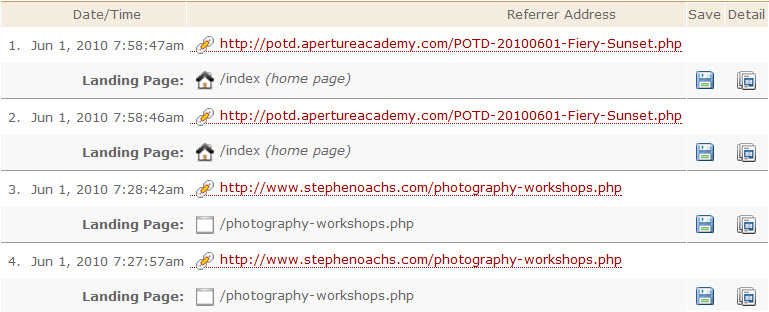 A "referrer address" is a link from another site or Web page that links to your website. When someone clicks that link on another website, like on a banner or a text link on a search page, the location is recorded as a reference, which you'll find on this report.